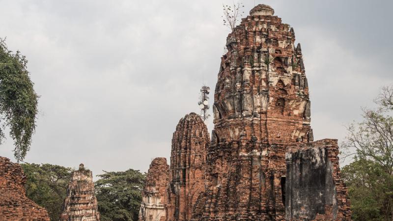 Ruins at Ayutthaya. Plus phone mast. At Angkor Wat in Cambodia, some of the phone masts are disguised as palm trees.