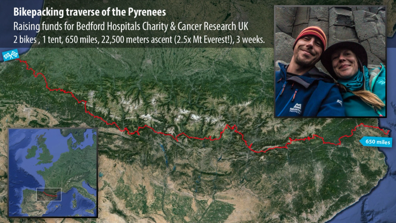 We have completed our 650 mile off-road traverse of the Pyrenees mountains and raised over £3,500 for The Bedford Hospitals Charity and Cancer Research UK.