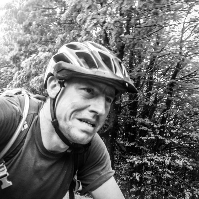 I had made it 20 meters or so when the figure shot out of the woods, flew down the road towards me and took the drop onto the gravel track, landing both wheels at the same time (nice) and leaving a cloud of debris behind her. Kate shot straight past me with a slightly hysterical laugh (think joker) that carried on as she disappeared around be next bend.