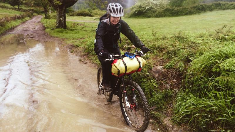 I had imagined our final day – our triumphant descent to the Atlantic coast – to be warm, sunny, downhill and accompanied some kind of fanfare (Eye of the Tiger, The Final Countdown or something like that on brass). But it wasn’t to be.. Despite delaying our departure for an hour or so in the hope that the rain would stop it just kept falling, so we donned our finest waterproof suits and headed out into the downpour.