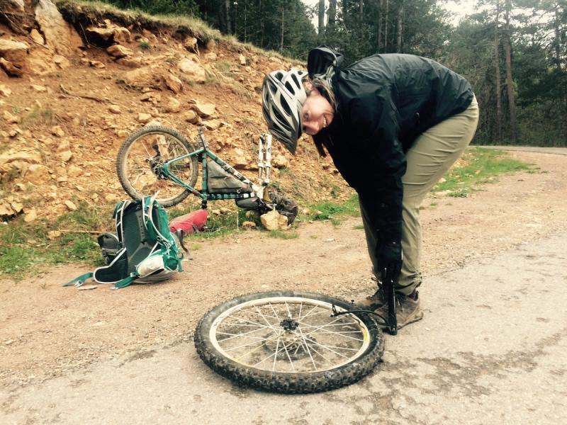 Thank goodness Gez is always super prepared and we were soon inflating an emergency inner tube to the comforting sound of the Pyrenean bovine samba band**