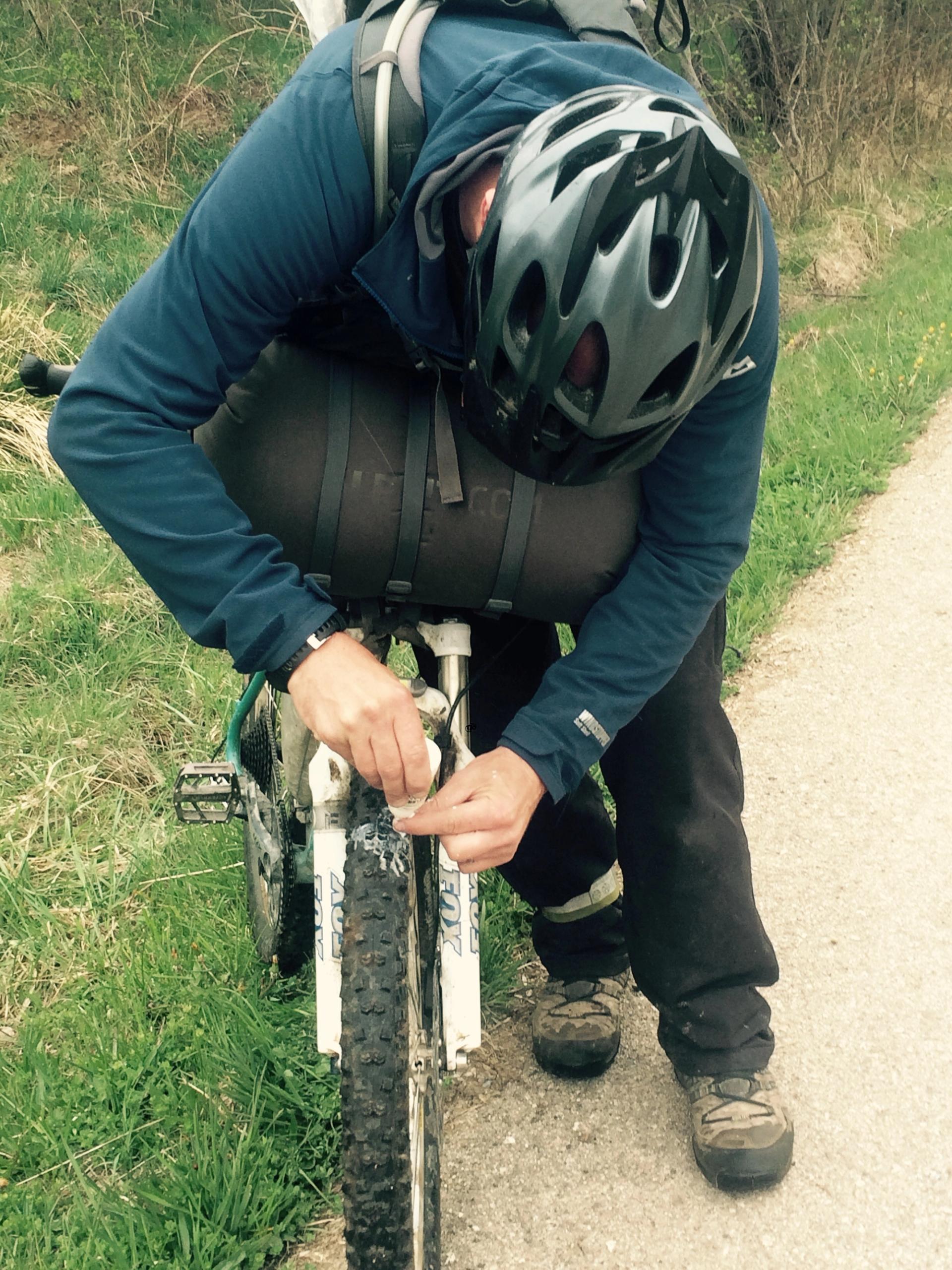 The first hopeful attempt to fix the three large holes with the special magic glue stuff (did I mention I have very little idea about mountain biking…?) was a right let down.