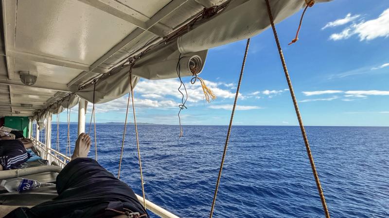 Some way across the Mindoro Strait we turn hard to port, the swell that had been hitting us from one side for hours is now throwing the ferry sideways and we’re heading back to Coron. We keep turning, we’re just doing doughnuts in the middle of the ocean. As we come back around to our original heading, the bow of Great Han from Hong Kong is definitely still in our path. After some frantic discussion in the wheelhouse about who’s right of way it is, we loop back round again, coming back on course in the wake of the much larger ship. Close enough to see there’s no one on any of the decks or, it seems, at the wheel.