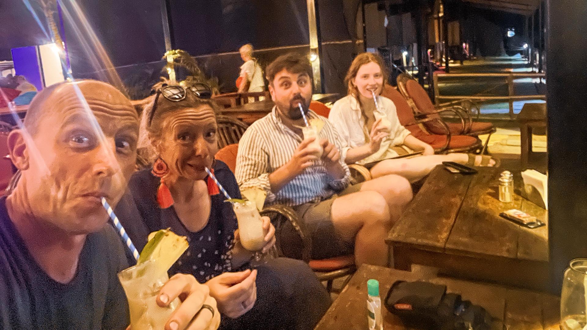 it was nice to catch up with Chazthorogoodmusic , Flo and their Royal Enfield for a few days, see Bristol locals Razzomo play their last gig of the season in Goa, and meet Kevin Brown (mates with a few of ours on the K&A) and catch his blues band wrapping things up at Phadi Roots in Patnam.