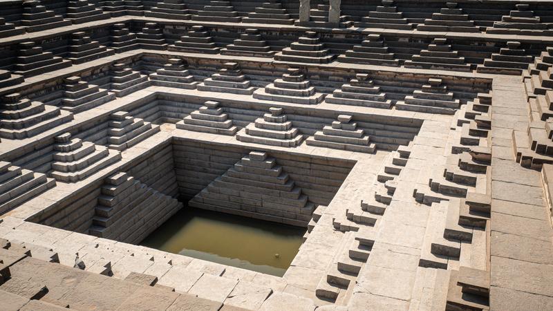 Many of the huge boulders that make up the landscape here bear the marks of a thousand strikes with a hammer and chisel – perforated, ready to split and create the next great structure to compliment the temples, palaces, queens bath, elephant stables and more. Lying around these, and everywhere, are large sharp-edged blocks of stone, patiently prepared and waiting for the next stone mason to create something beautiful. The engineering prowess required to bring water to the ancient city is most impressive. Perhaps the reason to build here was simply because they could…