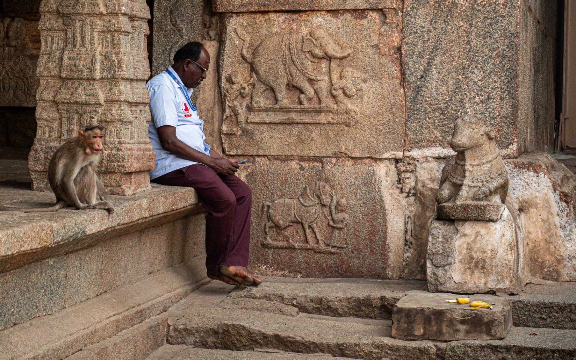 The landscape and climate have changed dramatically by the time we reach Hampi. This unfamiliar arid landscape leaves me wondering why such a significant city was built here in the first place.