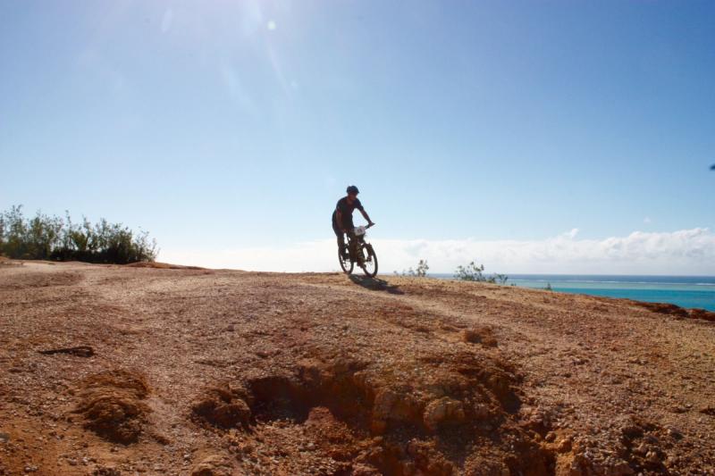 Race day arrives and as daylight creeps its way over the island we set off for the starting line (5km south of our bungalow). Most of the other entrants arrive clad in Lycra which makes me very uncomfortable on several counts and I start to regret being here. At that moment (and much to my relief) another normal looking person turns up, full of jokes and banter.