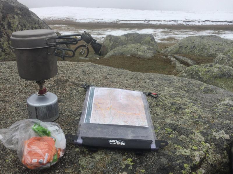 Gez is currently outside beating my back hub with a wooden chair leg in the absence of a hammer. We plan on resting here today and eating as much as we can until morning when the forecast is significantly better…