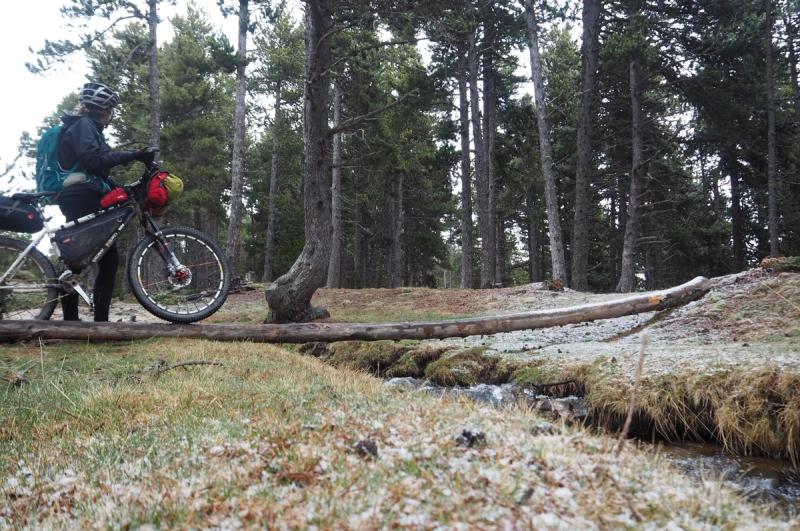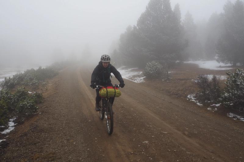 As the snow eased off and we entered the swathes of freezing fog on our way down the mountain, my back hub started playing up so even though the quality of the tracks had improved we couldn’t pick up the pace for fear of irreparable damage to my bike….we were less than half way through our route for the day and the cold was sapping our strength.