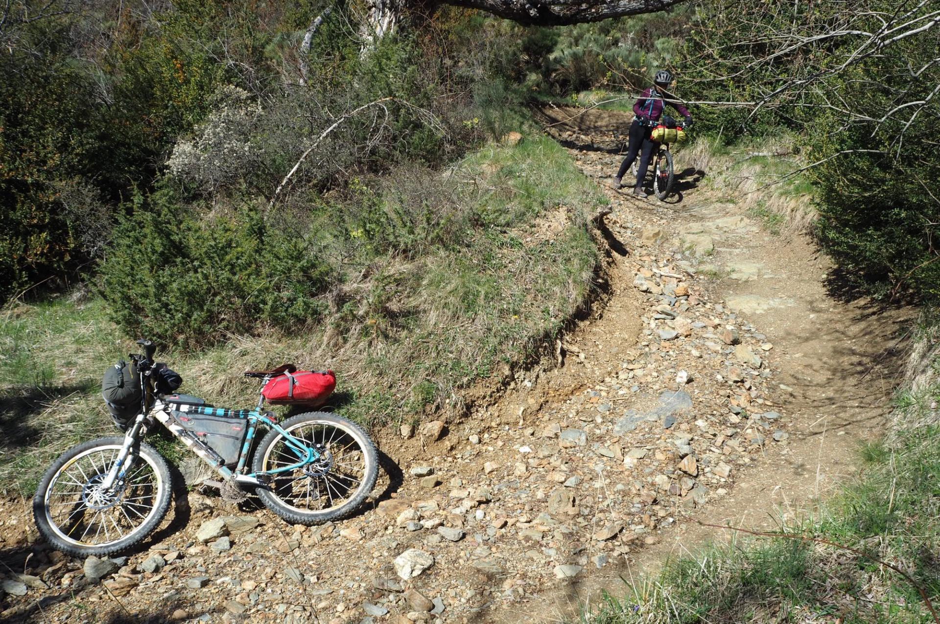 Just when we thought things had started to improve we were greeted by tracks so steep, rough and loose we struggled to walk them. Progress was painfully slow.
