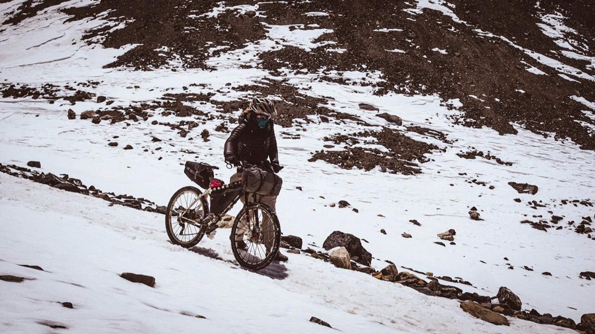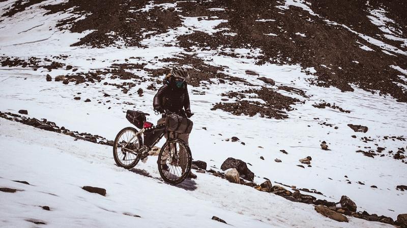 We load the bikes back up, wave a grateful goodbye to our helpers and head off as quickly as the existing snow and ice will allow. The snow clouds are only just forming as we start down the steep icy track but we know better than to wait for trouble to find us.