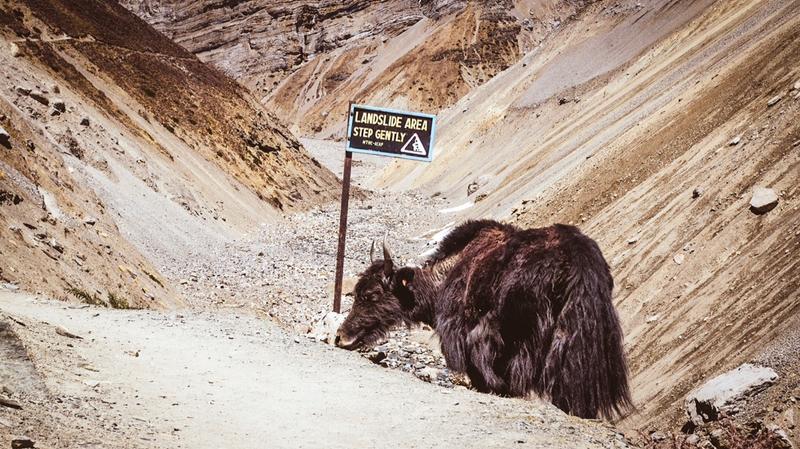 The locals tell us we should do the same, they seem worried that we intend to set off as late as 7am. The high altitude slows everyone down and bad weather is on its way. When the mountain people of Nepal look worried with your plans you know it’s time for a bit of a rethink. The locals told us that the path to Tilicho Lake was “fine”, a path of that kind would be deemed far too dangerous and more than likely closed off in Europe. We check our progress so far and sure enough, at the pace we are moving with fully loaded bikes we will be caught in the snow.