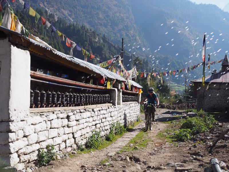 Many of the jeep tracks along the lower parts of the Annapurna Circuit are in the process of being buried, washed away, rebuilt or resurfaced. For resurfaced also see covered in beautifully arranged massive sharp, pointy rocks that have been broken by hand. The older parts of the track are well worn and rideable, by this I mean earth from landslides and floods has filled in the massive gaps between the rocks or that the ever present waterfalls have washed some of the rocks away leaving a slightly less punishing muddy single track that weaves between the remaining boulders.
