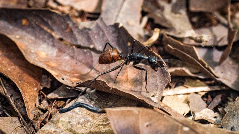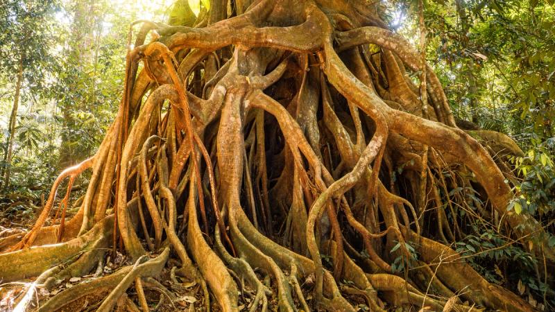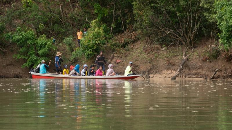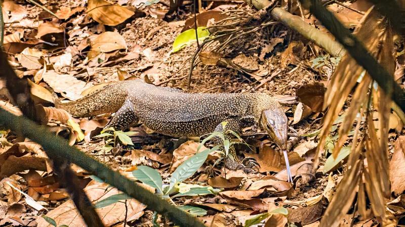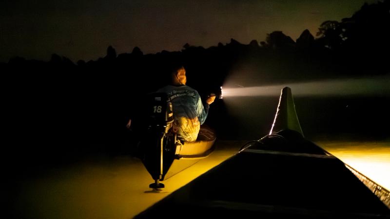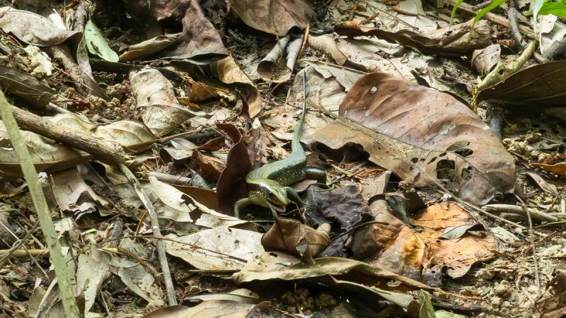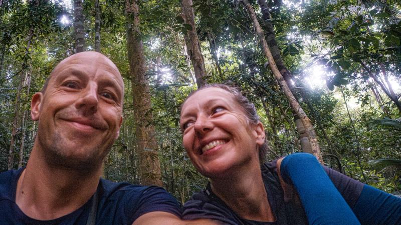 The noise of safari boats and other tourists disappears as we step off the rickety boardwalks and onto the more challenging soft earth trails. We pass through a brief wall of quiet, as though the rainforest is holding its breath, then the almost deafening sound of an ecosystem bursting with life returns.