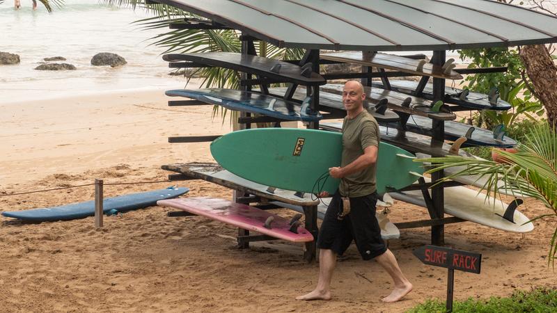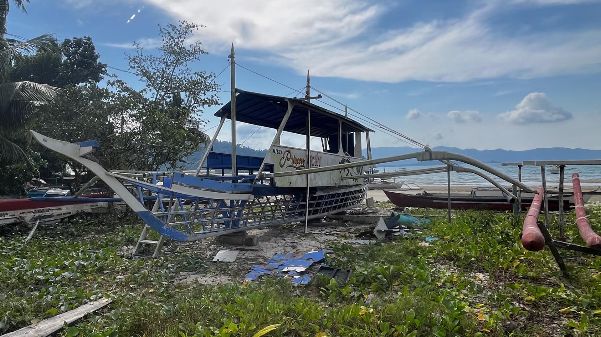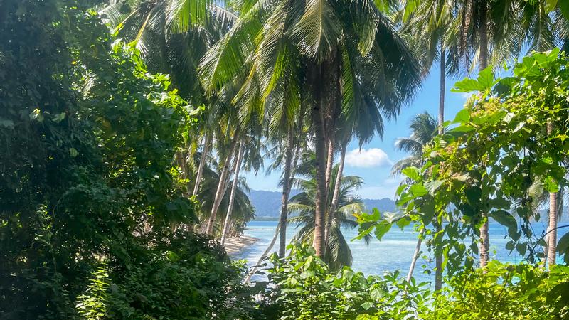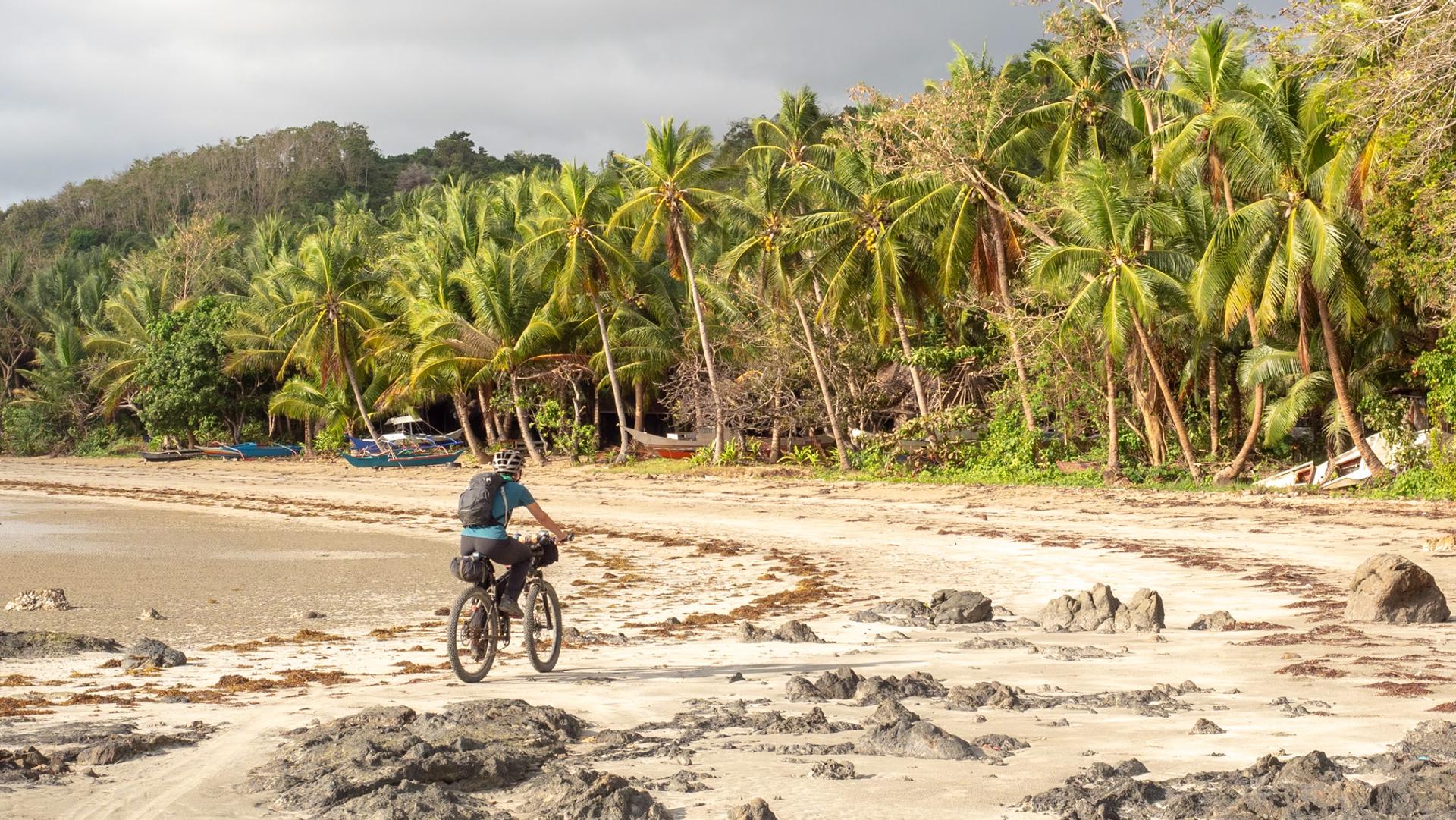 Keeping off the manic concrete roads in 33 degree heat proved to be a challenge, particularly between San Vincente and Port Barton …so we chartered a boat, captained by a fellow cyclist.