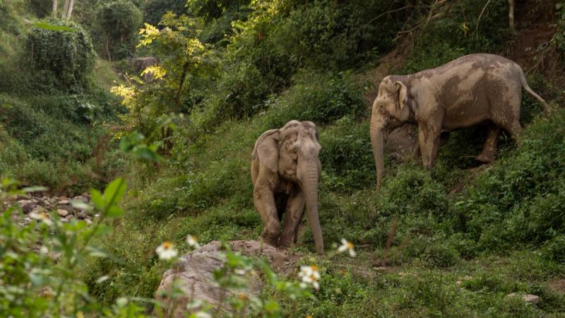 The volunteers at the park explain the difficulty these elephants sometimes have just being elephants - learning how to feed themselves in the forest, how to drink water from the river, how to socialise again ... A pregnant mother gives birth to a calf in the park, a long awaited and joyous occasion, but the mother had no idea how to interact with her calf at the beginning. Having been cruelly 'broken' at a young age, worked continually and denied the social interaction that is key to these animals development and behaviour, it's actually not hard to understand how this - how to be a mother, how to be an elephant - has simply been forgotten.