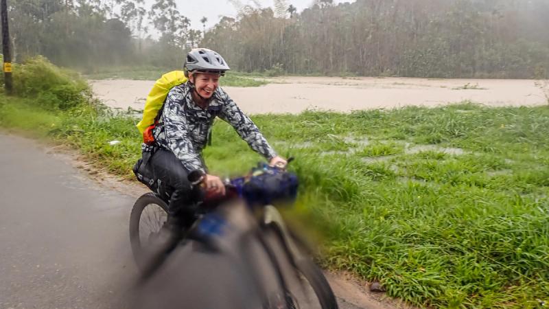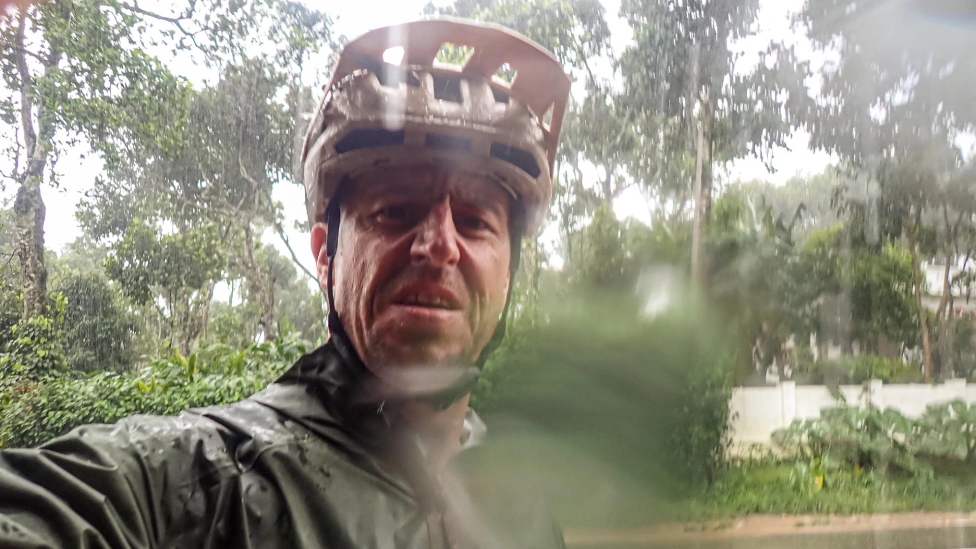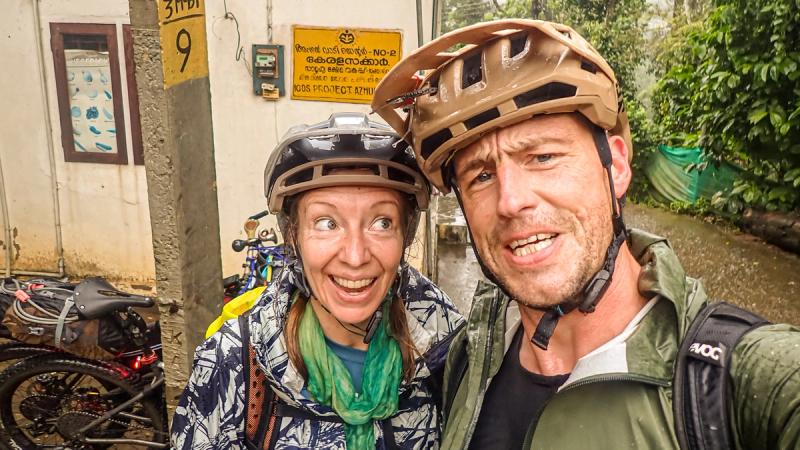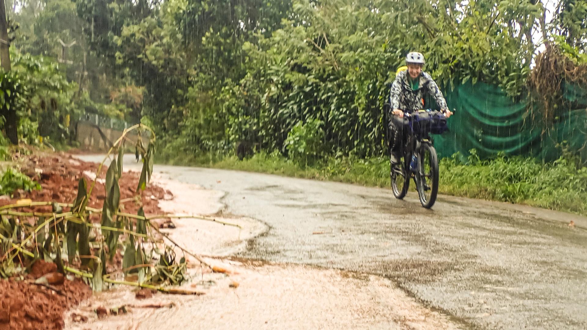 The rain in Kerala falls mostly on the two idiots on bicycles.