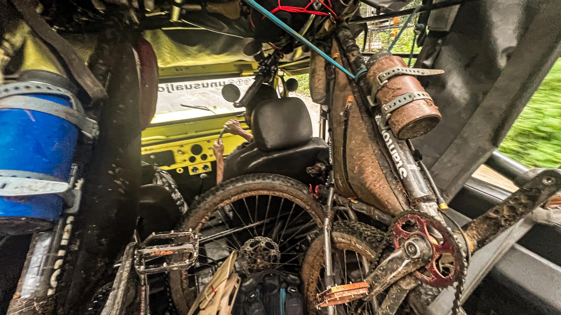 Very occasionally it’s better (and more fun) to get a lift in a jeep – Big thanks to @cycling_iluminati and @unusualjourney for helping us out at the end of our third day out in the rain, jeep lift and nice hotel was most welcome.