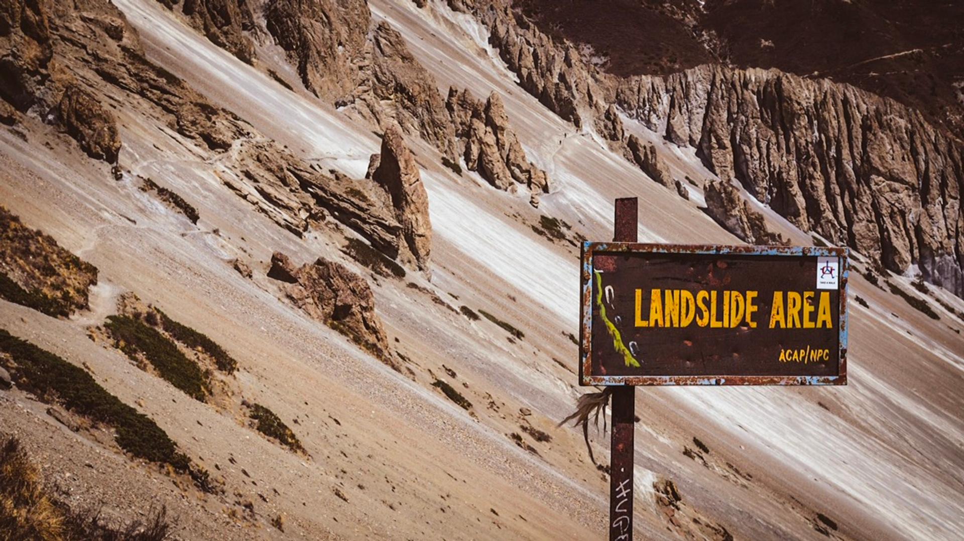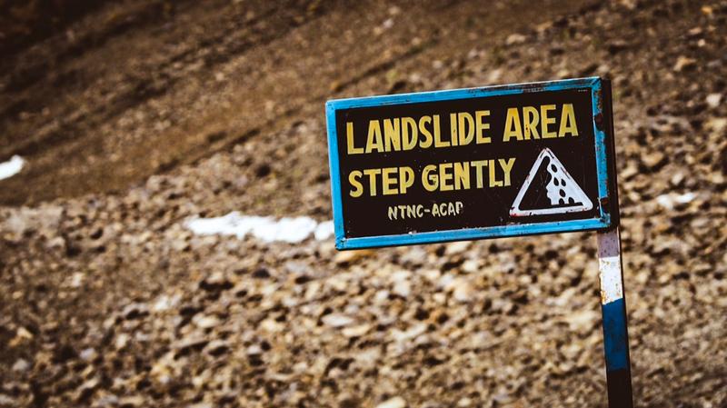 For landslide also see really steep scree slopes that have yet to stop flowing and shifting like water down the mountain side.