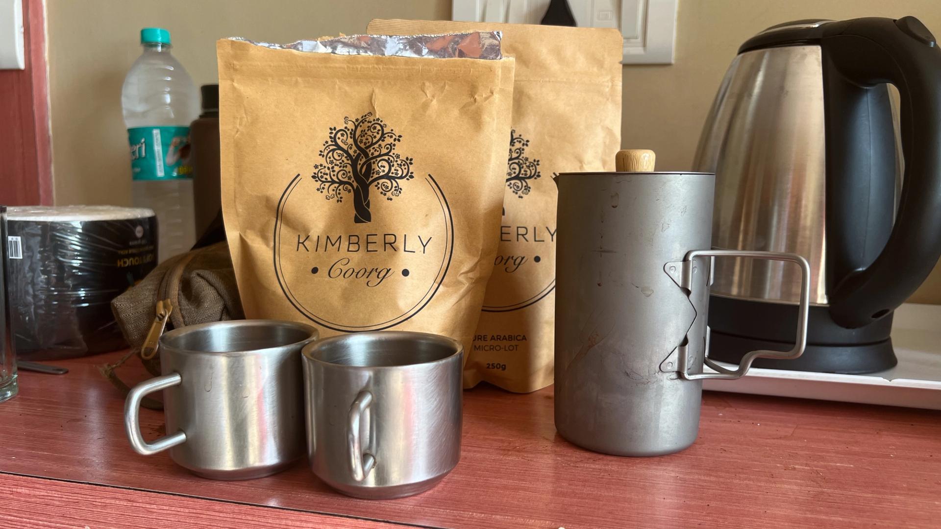 Even though we’re often surrounded by thousands of coffee plants, finding coffee to drink is rare. Nice to stock up in Madikeri.