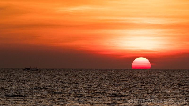 Thankfully squid fishing boats feeding the Thai market are so heavy in number in this region that the sharks are all kept far too busy to come this close to shore.