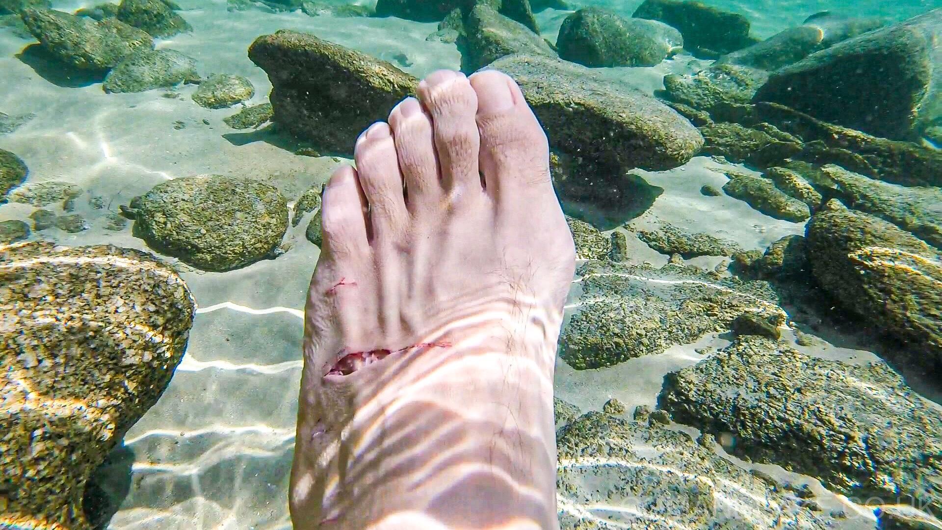 Cutting his foot quite badly while treading water, Gez has been working really hard to rest it ever since (look away before you get to this bit if you are squeamish).