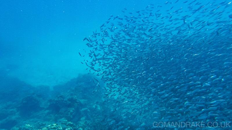 I was, at the time captivated by the site of a leopard moray eel and giant grouper. I realise now that they were there following the scent of blood to the swimming buffet. The same swimming buffet that was trying to gain my attention while heading for shore and the comparative safety of his shoes.