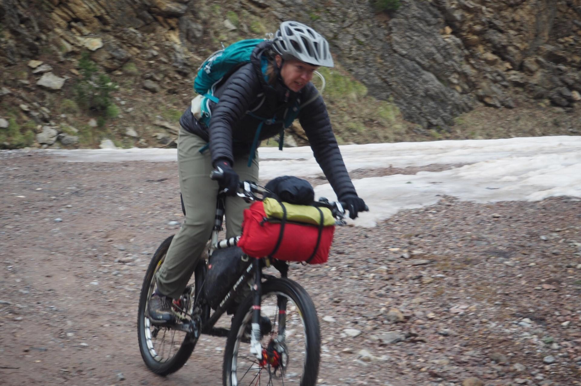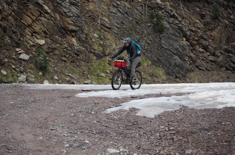 Once we had passed the high point of the day (2024m) it was all downhill. Firstly a 900m drop through the snow covered forest on fast switchback fire roads (happy to have a full set of brakes now!), then a very long steady descent through the stunning ‘ Paso la Inslusa’ gorge – not quite freewheeling all the way, but very pleasant gravity-assisted pedaling.