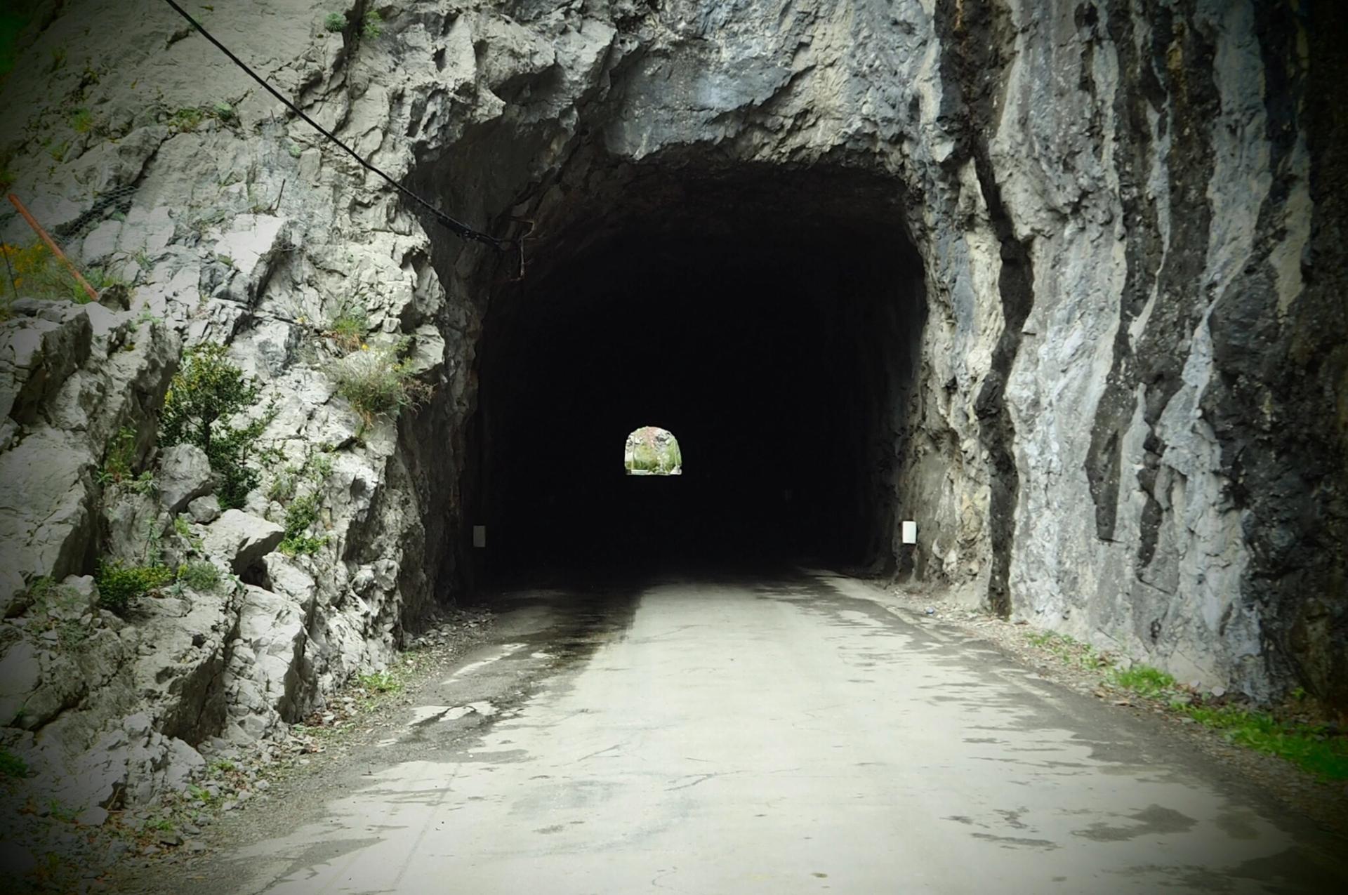 We passed through tunnel after tunnel, lights on but essentially riding blind feeling for pot holes.