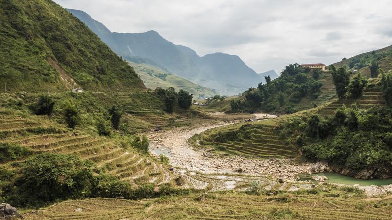 We are not Vietnamese, we are English and we are ridiculously hot, so cycling in the rain it is. Our fellow travellers meet our gaze with with a jolly “Hello” looks of amusement, disbelief and concern. Some try to assist by gesturing wildly at the corner shop we have just passed that has enough tailored plastic to meet our needs. We cycle on, grinning ear to ear, enjoying the plod up hill in what must now only be 28c.