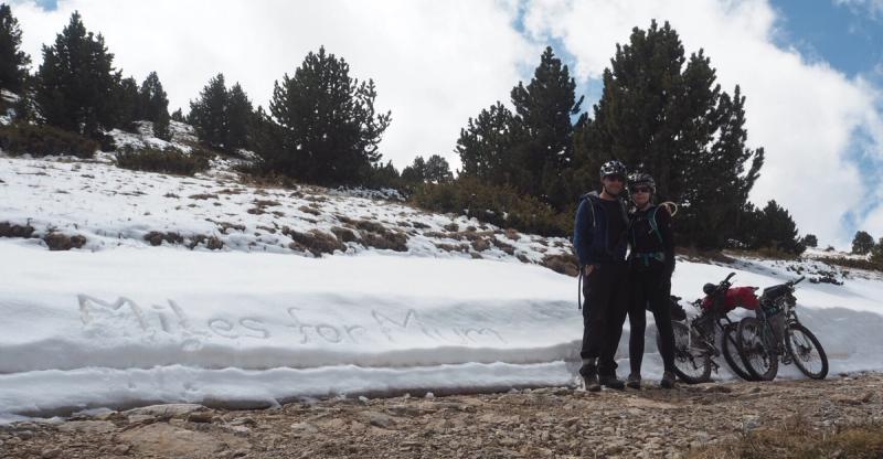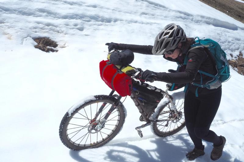 Just in case any of you have been wondering (…and I’m guessing you all have). Pushing a fully laden touring mountain bike up hill to 2145mtrs above sea level to then try and ride it down a series of partially snow covered ski slopes that sit on top of some very slippery scree is, without question, a bad idea. Right out of my comfort zone and head and shoulders above my current mountain biking ability level …even Gez got off and walked!